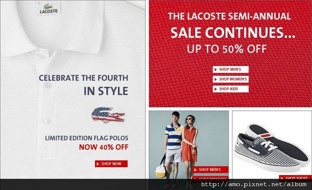 【Lacoste】sale區五折起! 指定商品額外六折!! 免境運!!! 只到7/4